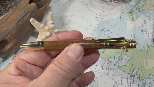 10K Gold Sea Turtle Pen with Blue Dyed Stabilized Ambrosia Burl