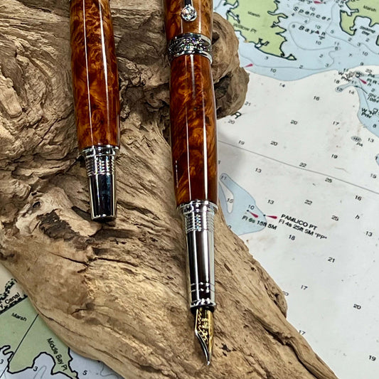 Rooted in the rich history and natural beauty of the Pamlico Sound region, our fountain pens are designed for the discerning individual who appreciates fine craftsmanship and the power of a personal touch. The collection features a diverse array of materials, from locally sourced woods that echo the coastal landscape of North Carolina to rare and exotic woods from around the globe.