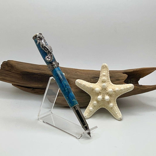 Pirate Pen Handcrafted Blue and Antique Pewter
