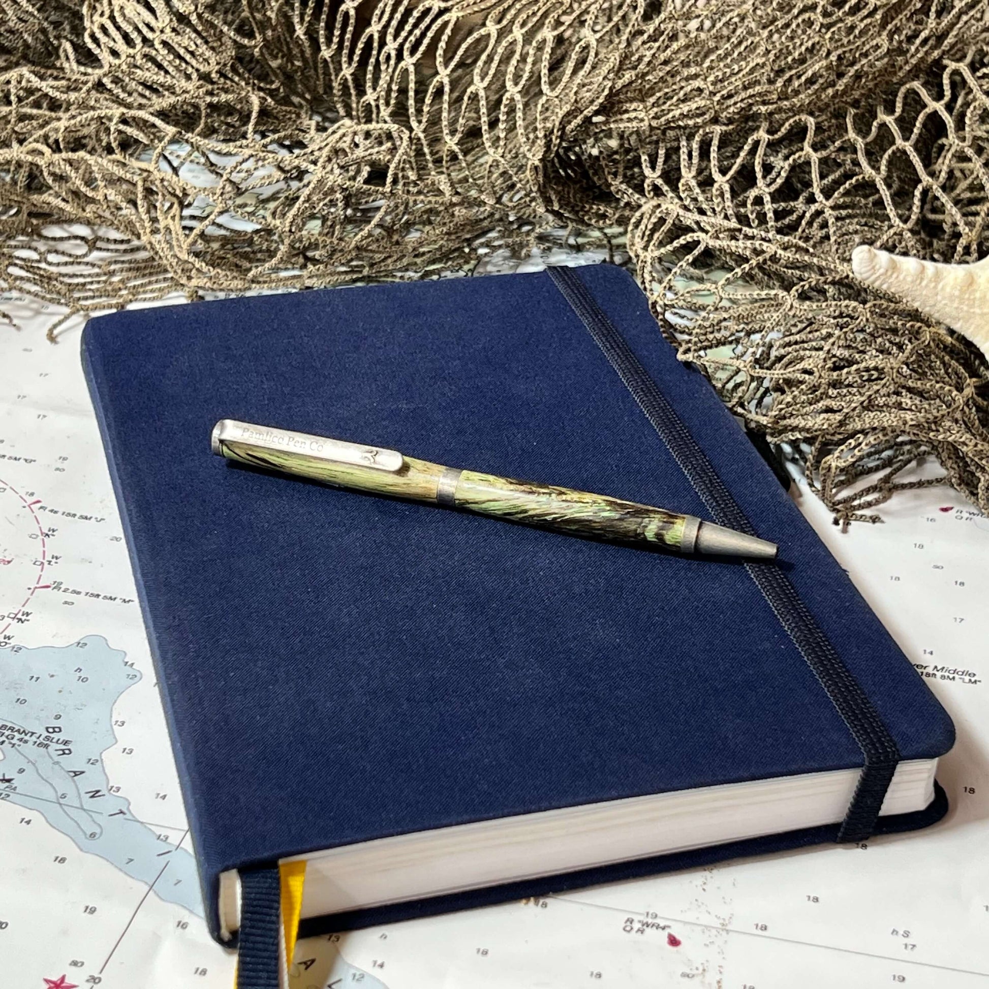 Experience the timeless elegance of our handcrafted vintage look green ballpoint pen. Made with a spalted maple design and antique silver accents, this pen is both stylish and functional. The twist mechanism and cross-style refill make it the perfect companion for any writing task. Our bestseller for a reason!