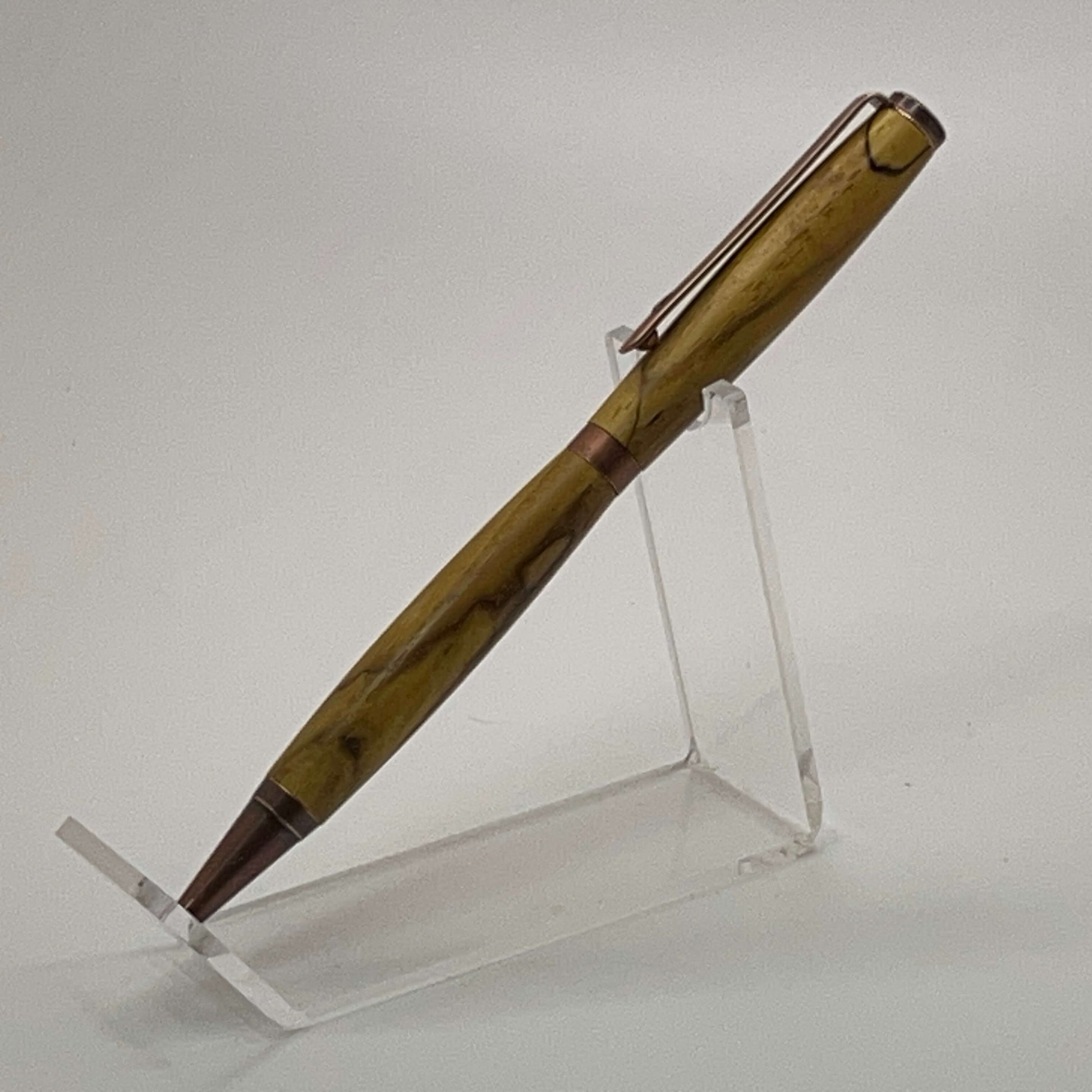 This Yellow Vintage Looking Ballpoint Pen features a beautifully crafted spalted maple barrel with antique copper accents, giving it a vintage and unique appearance. The smooth ballpoint mechanism ensures effortless writing, perfect for those who appreciate both style and functionality.